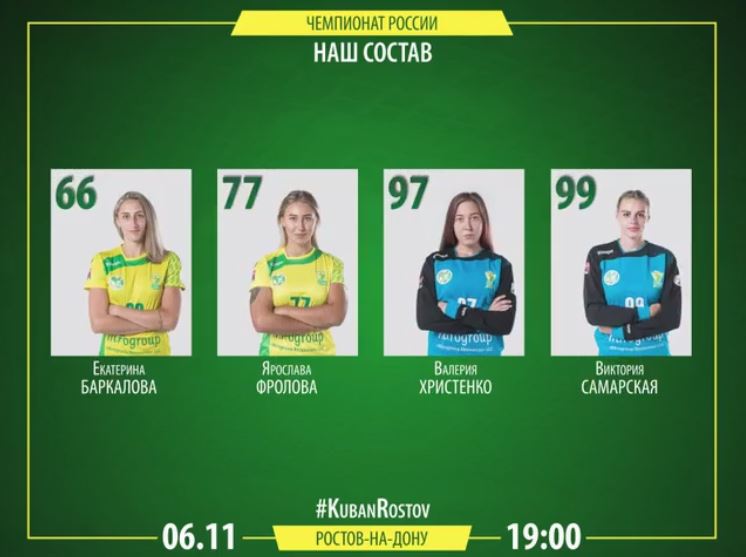 Кубань: Каплина, Христенко, Самарская; Давиденко, Самойленко, Голуб, Савинова, Гаряева, Голикова, Матлашова, Башкирова, Давлетбаева, Скоробогатченко, Дудина, Баркалова, Фролова.