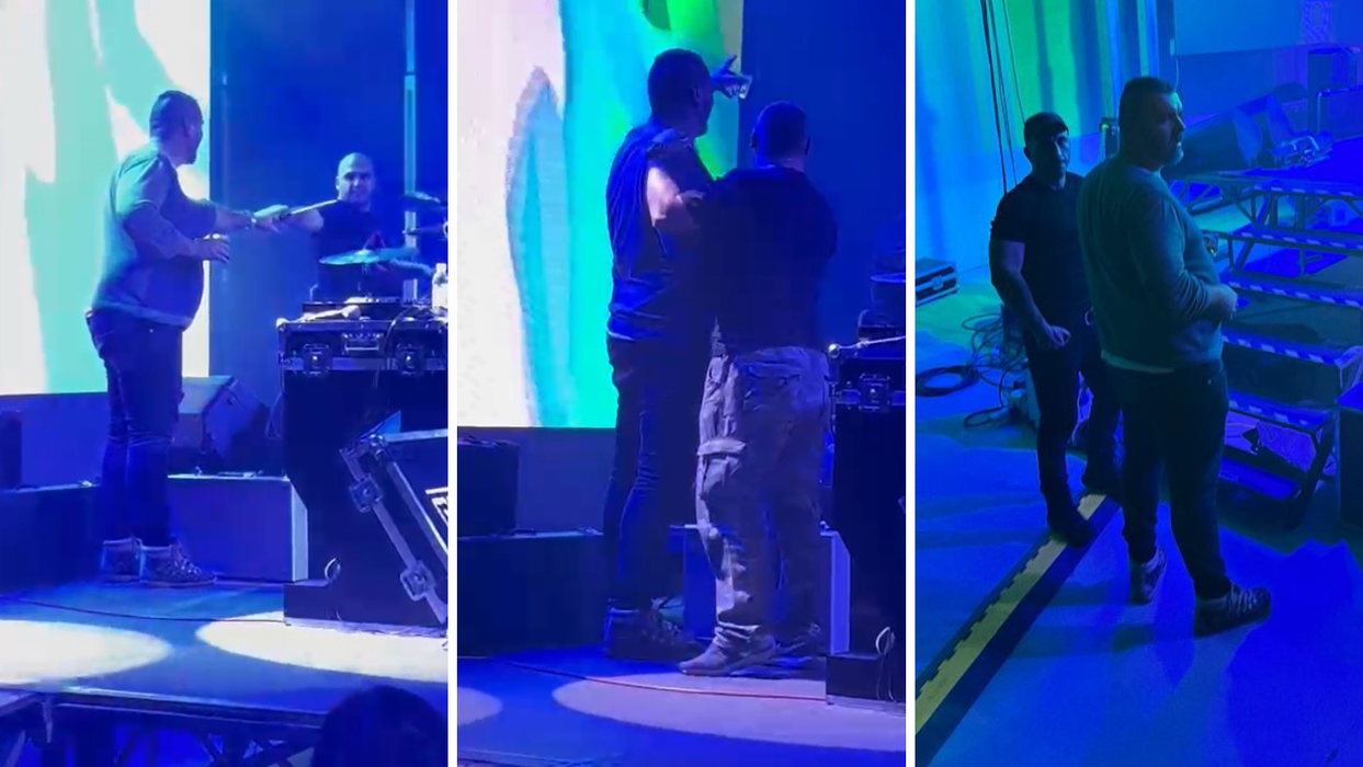 После нескольких неуспешных попыток выбраться на сцену с бокалом спиртного, осуществить задуманное Бунтичу удалось. Он приблизился к барабанщику, обменялся с ним приветствиями, но добраться до солиста 198-сантиметровому экс-гандболисту помешала охрана.