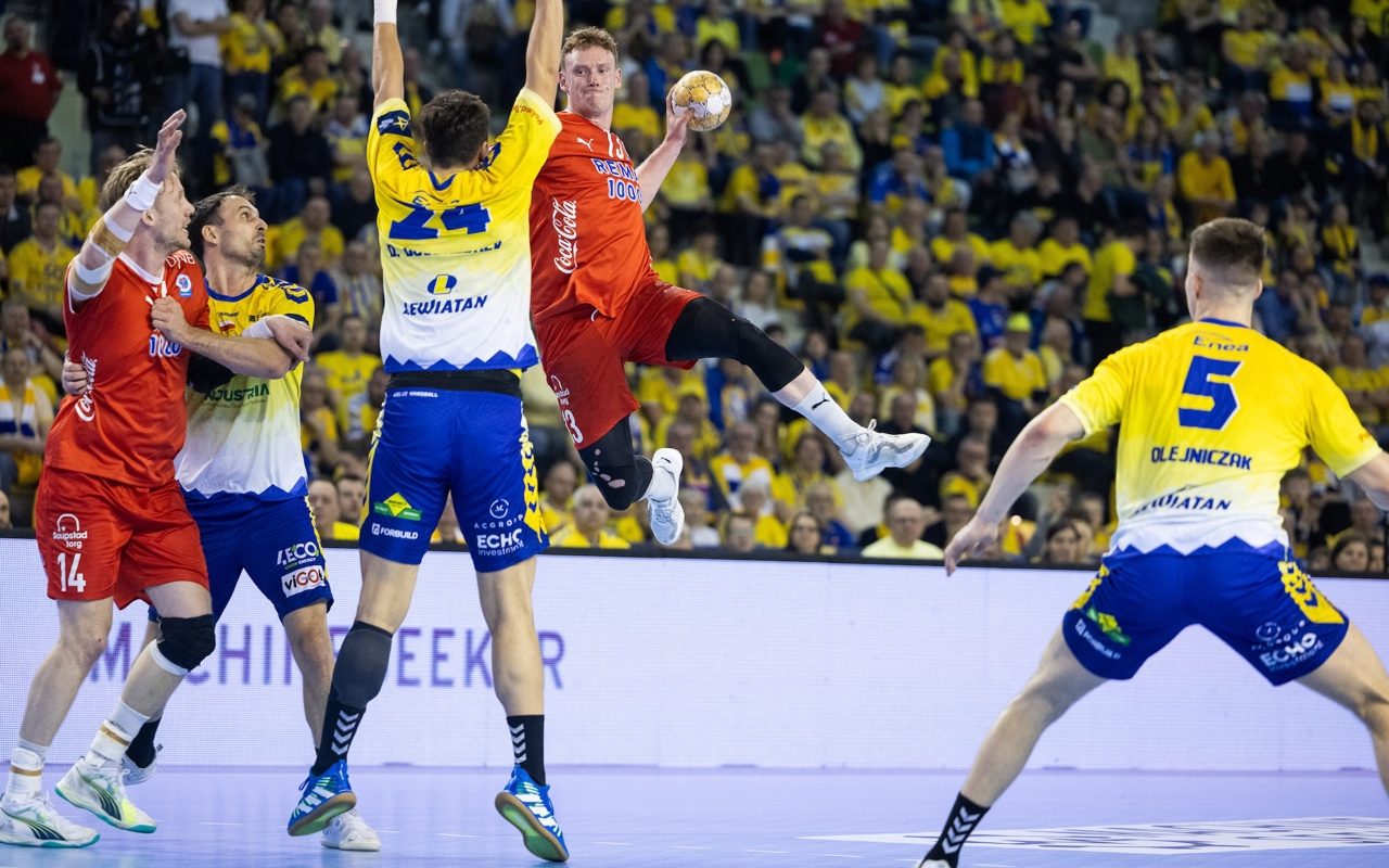 Хозяева начали матч неспешно. Видеть такими склонных к скоростной игре учеников Дуйшебаева-старшего было непривычно. Но тем самым гандболисты "Кельце" решили сразу две задачи. Во-первых, сэкономили силы с учётом сложной кадровой ситуации. Во-вторых, стреножили не менее быстроногих соперников. До середины первого тайма команды шагали вровень. А затем хозяевам удалось создать небольшой задел.
