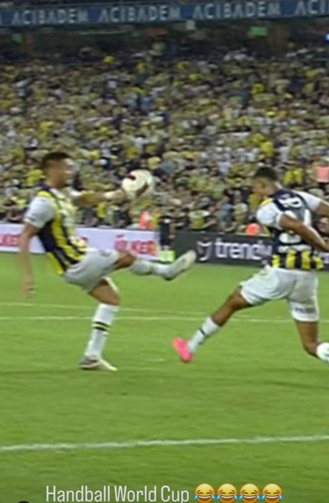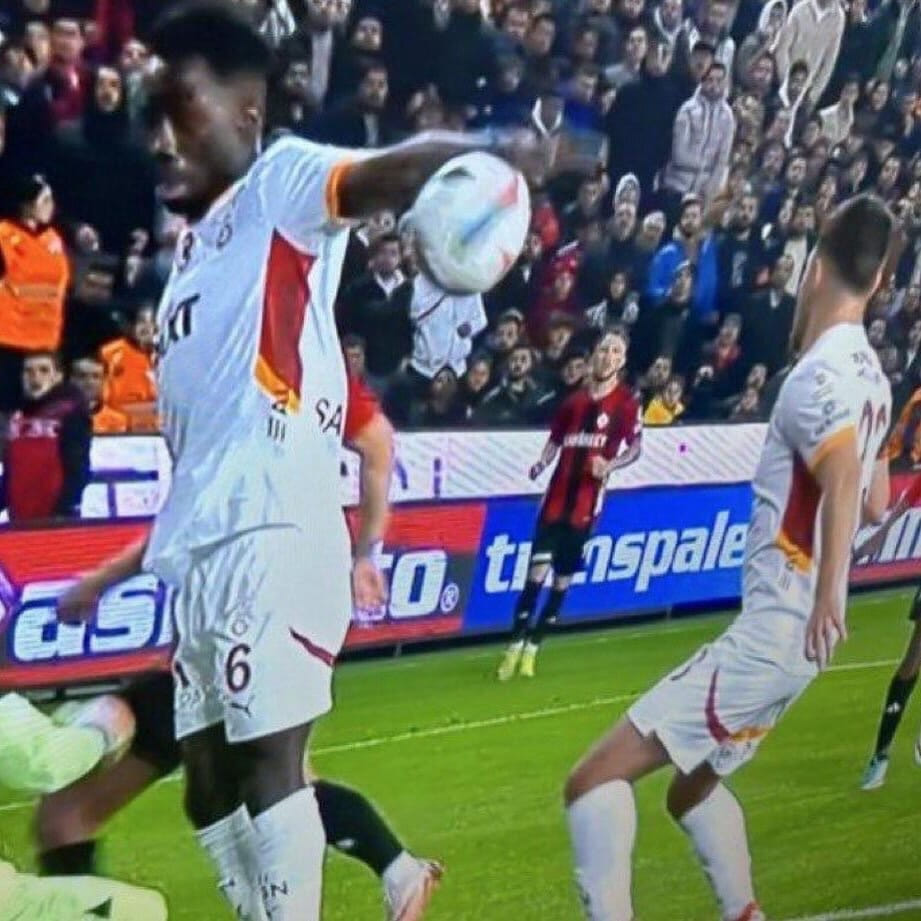 Также он приложил скрин из трансляции матча "Галатасарая" (главного соперника "Фенербахче"), на котором видно, как мяч попал в руку футболистку турецкого клуба.