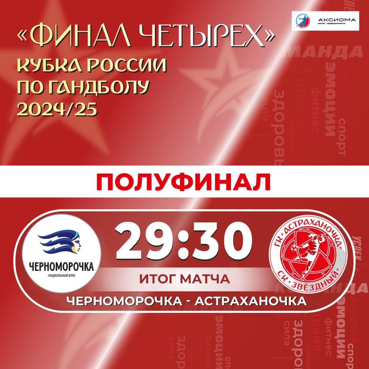 БЦ спешит с подробностями второго полуфинала женского Кубка России — "Астраханочка" победила "Черноморочку" (30:29) и впервые за 9 лет вышла в финал турнира.