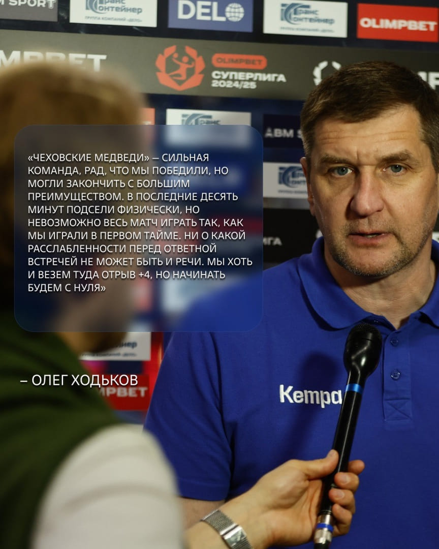 — "Чеховские медведи" — сильная команда, рад, что мы победили, но могли закончить с большим преимуществом. В последние 10 минут подсели физически, но невозможно весь матч играть так, как мы играли в первом тайме. Ни о какой расслабленности перед ответной встречей не может быть и речи. Мы хоть и везём туда отрыв четыре мяча, но начинать будем с нуля, — резюмировал Ходьков.