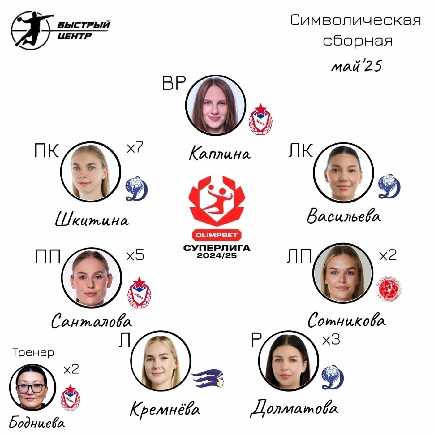 Капитан ЦСКА, универсал из "Астраханочки" и крутая Близнова. Символическая сборная апреля