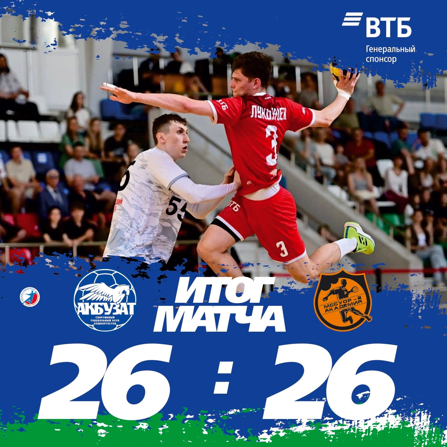 30.05. Акбузат (Уфа) — МССУОР №2 – Академия (Москва) — 26:26 (13:14)