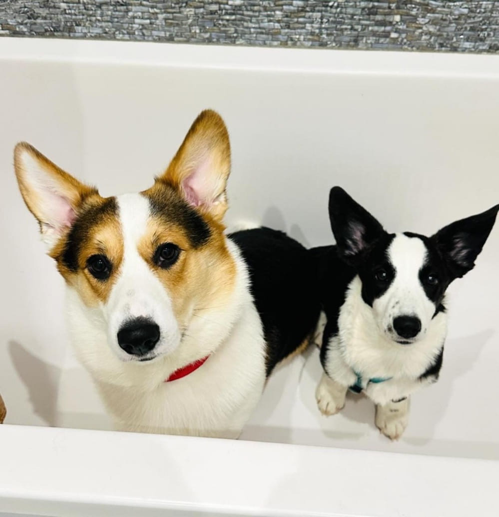 — У нас два корги. Пемброк и кардиган. Первый — рыжий, зовут Кексик. Второй — чёрно-белый. Кличка Тортик.
