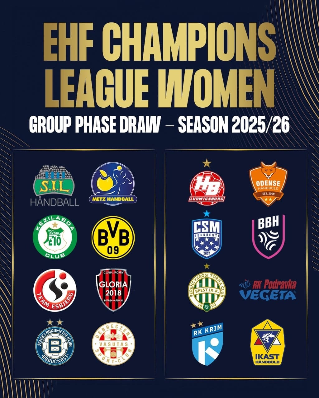 "Сторхамар" (Норвегия), "Мец" (Франция), "Дьёр" (Венгрия), "Боруссия" (Германия), "Эсбьерг" (Дания), "Глория Бистрица" (Румыния), "Будучность" (Черногория), "Дебрецен" (Венгрия).