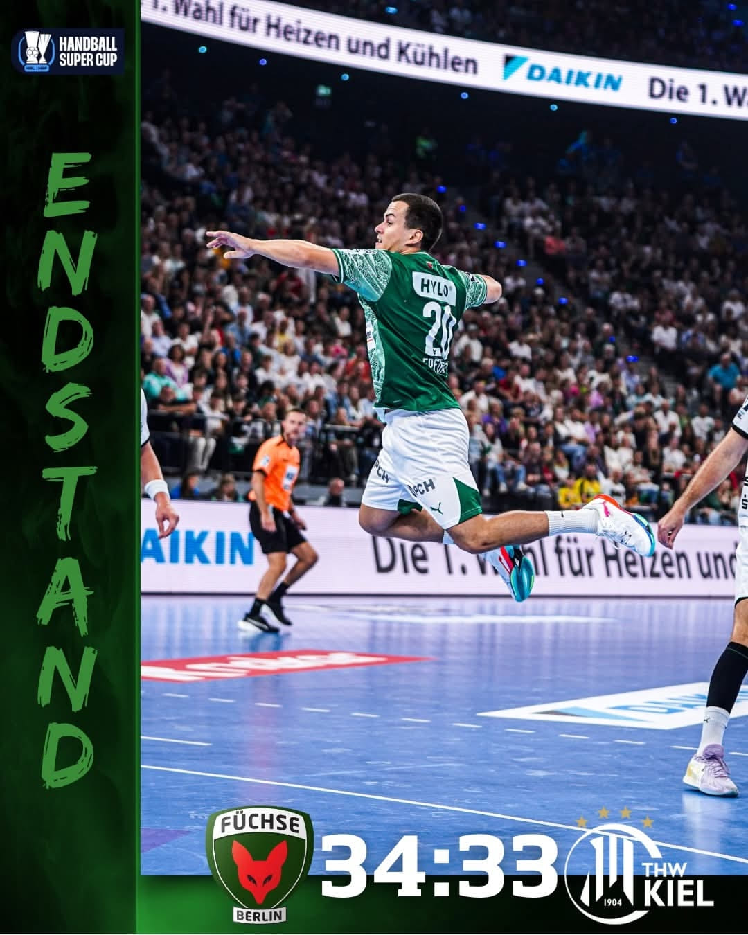 Берлин — Киль — 34:33 (19:14, 31:31, 3:2 — по пен) (Гидсель — 8; Эллефсен о Шипагёту — 8)
