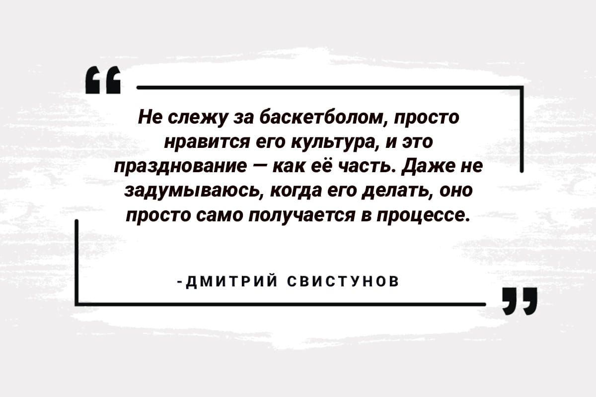 — Не слежу за баскетболом, просто нравится его культура, и это празднование — как её часть. Даже не задумываюсь, когда его делать, оно просто само получается в процессе. Помогает находиться в поток игры, в кураже, надеюсь, ещё и зрителям нравится. Ведь немного зрелищности гандболу как будто бы не повредит.