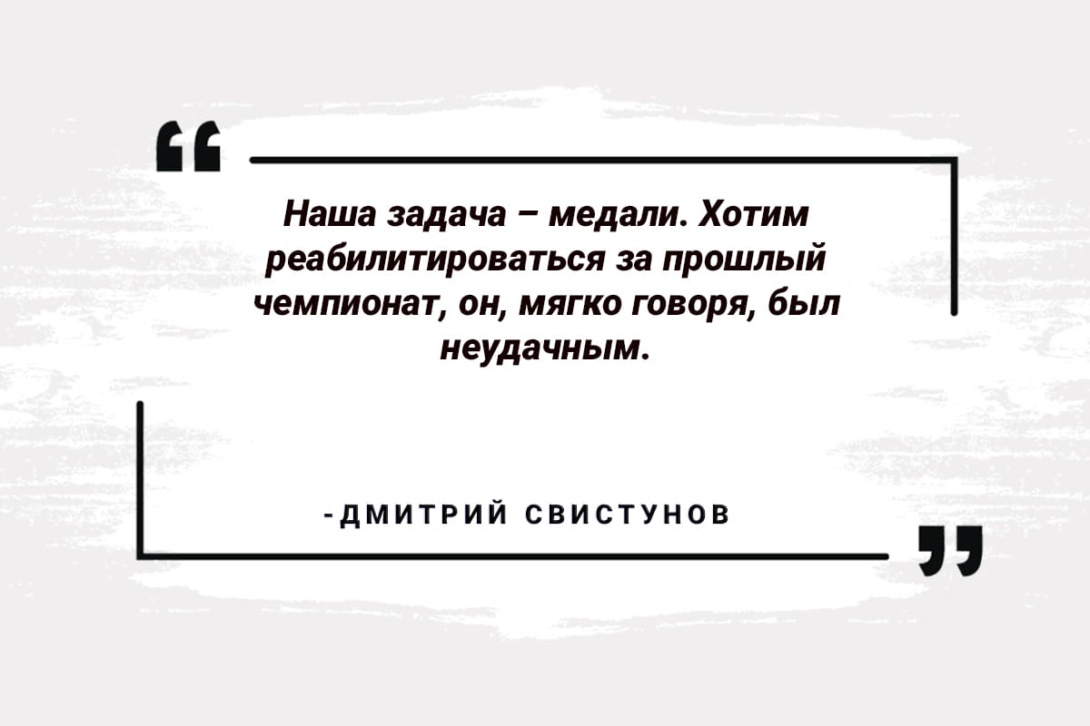 — Да, медали. Хотим реабилитироваться за прошлый чемпионат, он, мягко говоря, был неудачным. Это абсолютно не наше место!
