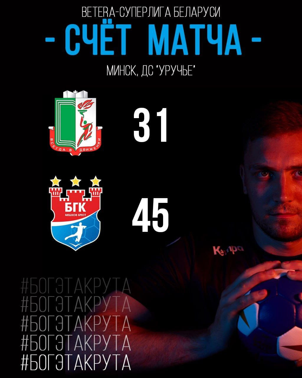 БГУФК-СКА — Мешков Брест — 31:45 (14:22) (Курнев — 7, Дмитриев — 6, Гайдук — 5; Баранов — 14, Степанович, Врачевич — по 5)