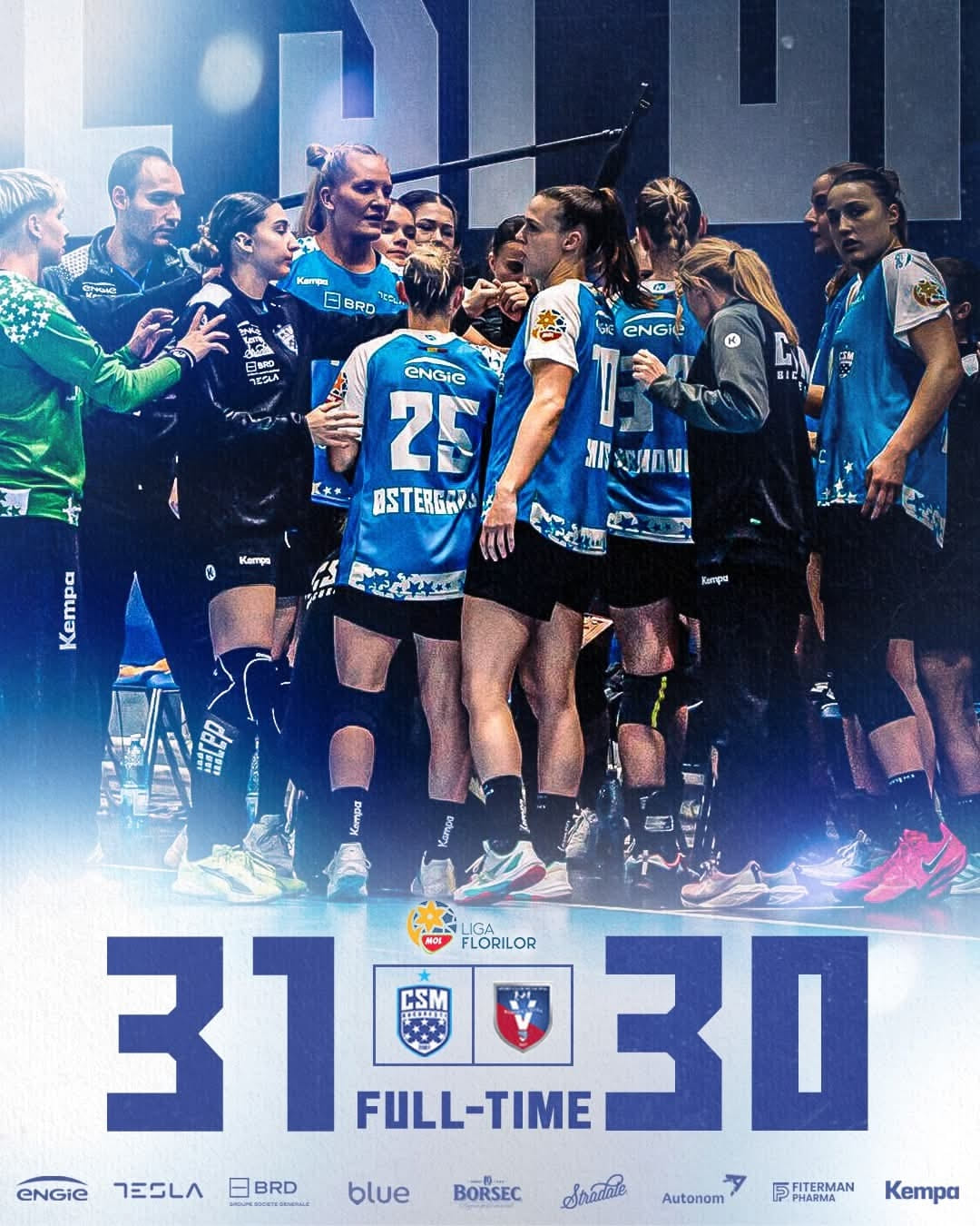 Глория Бистрица — Дунэря — 28:27 (17:13) (у гостий: Мокат — 1, Кирдяшева — 0, вратарь Трусова — 12/27=44%)