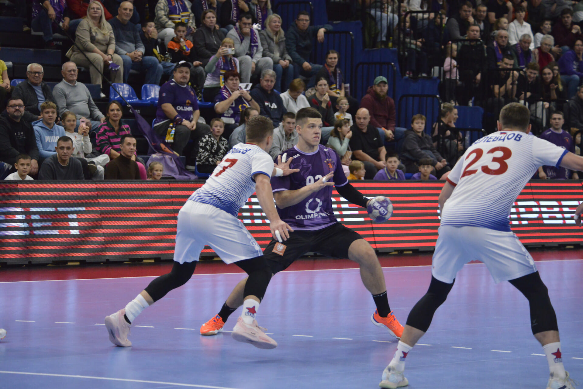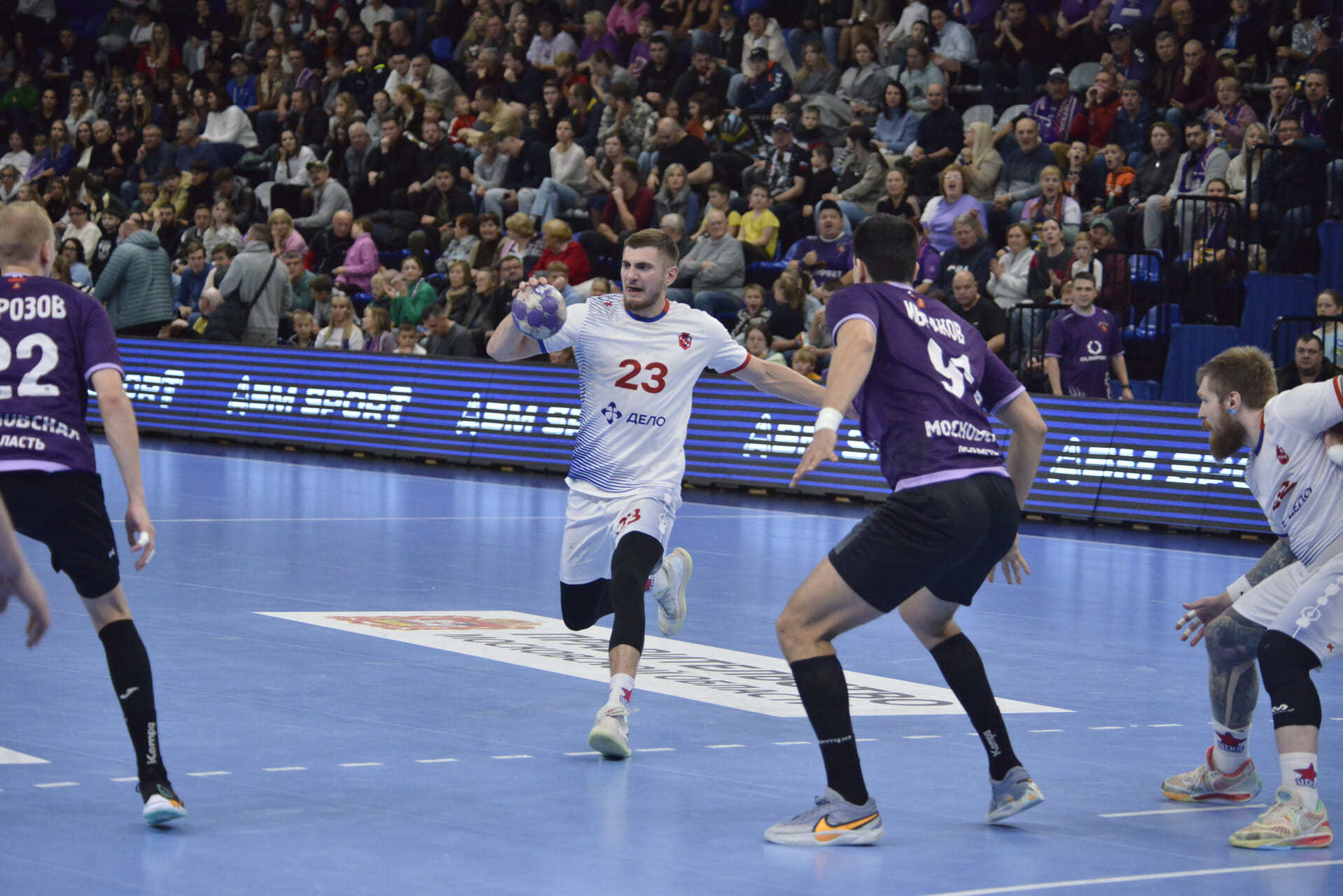 Гости добавили агрессивности и в атаке. Валентин Воробьёв настырно лез в прорезки и трижды (а всего 4 раза) зарабатывал 7-метровые. Как обычно, со страстью бился на позиции линейного Вячеслав Касаткин. Безупречным завершением (4/4) отметился Егор Кочура. Важные мячи в концовке забрасывали Юлиан Гирик и Даниил Шишкарёв, который располагался на позиции правого полусреднего (на фланге весь матч отыграл Иван Ерканов) и действовал полезнее молодых Даниила Москаленко и Алексея Курочкина.