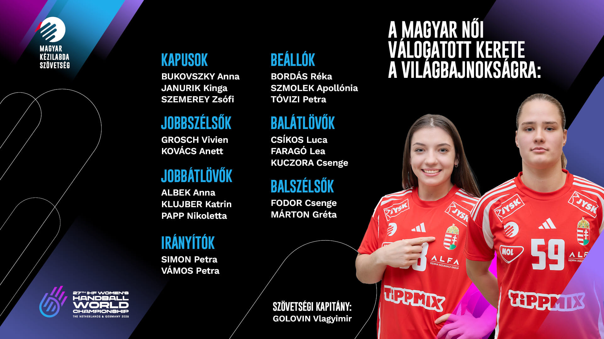 Главный тренер сборной Венгрии Владимир Головин определился с составом на женский чемпионат мира-2025.