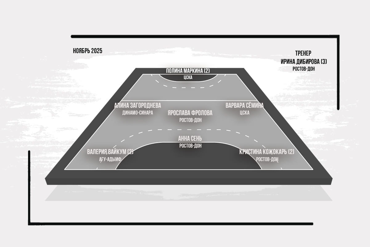 Лучшая в Европе в ноябре! По среднему количеству голов за матч — ровно по 9. Всего в четырёх матчах отличилась 36 раз. Последний раз такой показатель у игроков Суперлиги был в апреле 2023 года — Валерия Кирдяшева и Анастасия Селивёрстова завершили тот месяц со средними 9,7 и 9 гола за матча.