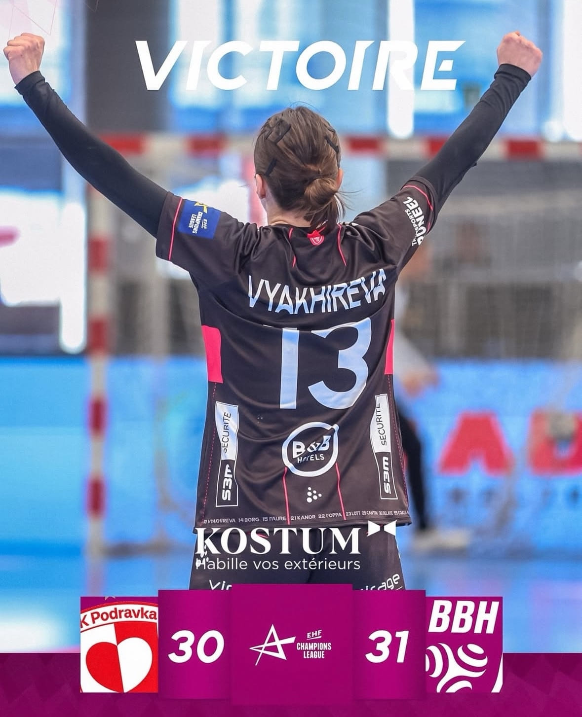"Брест" сделал ещё один шаг к четвертьфиналу, а Вяхирева поднялась на четвёртую строчку в рейтинге снайперов ЛЧ. Кстати, впервые в карьере она в трёх матчах одного сезона Лиги чемпионов забросила 10+ мячей. Всего до этой кампании у неё было пять таких матчей.
