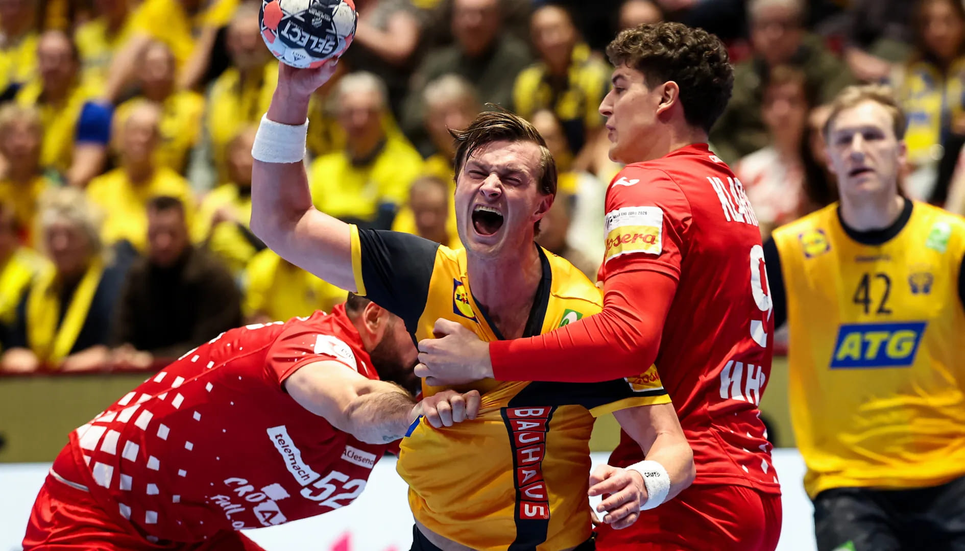 Сборная Швеции уверенно обыграла команду Хорватии, заняла первое место в группе "Е" и заработала 2 очка в зачёт основного раунда. В составе проигравших 7 мячей забросил Звонимир Срна.