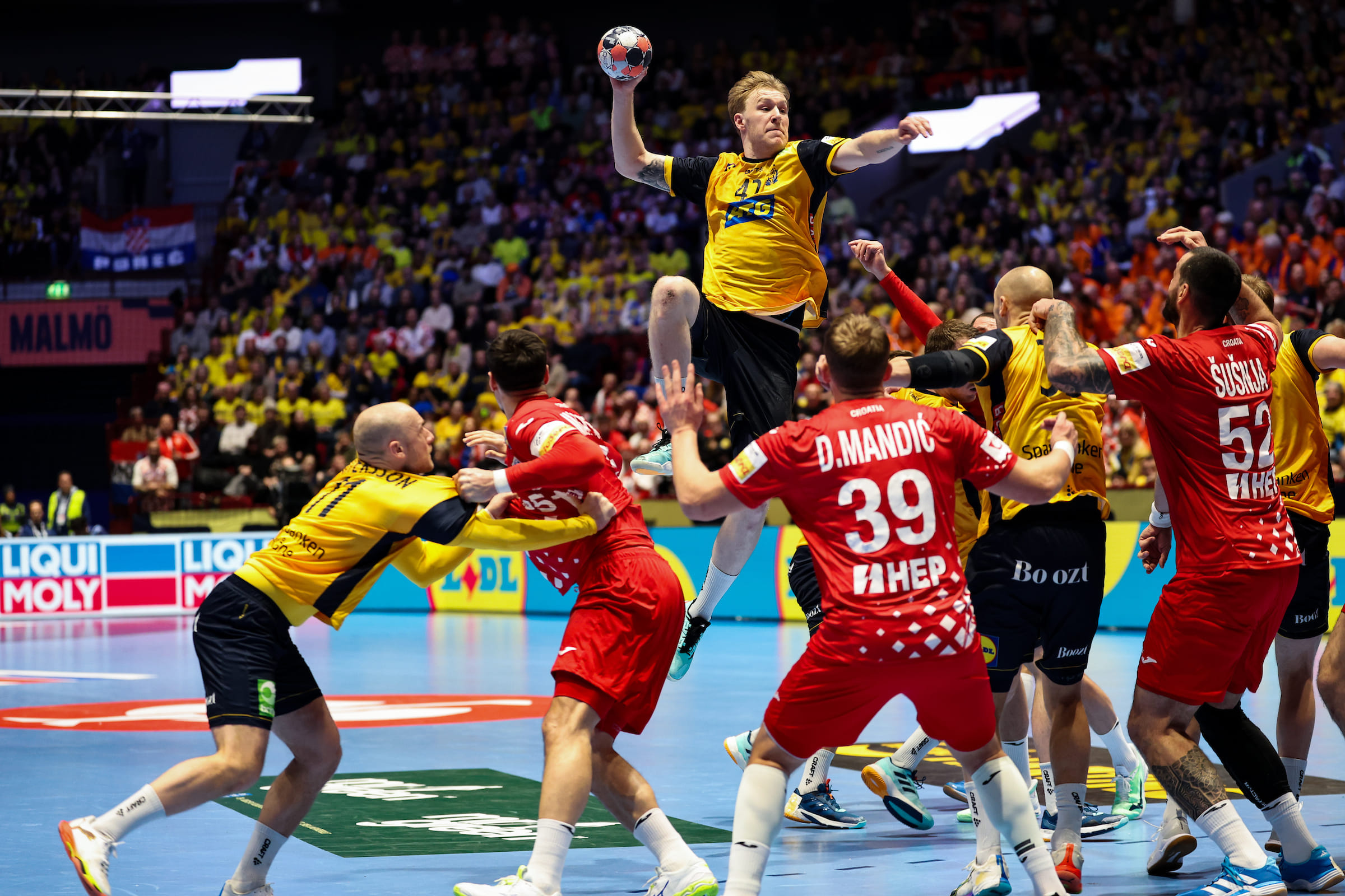 Медлительность игроков сборной Хорватии чувствовалась и в позиционке. Много раз мяч, словно кусок мыла, выскальзывал из рук, после чего игра превращалась в коллективные попытки ухватить снаряд. И чаще всего в этом опять же преуспевали шведы.