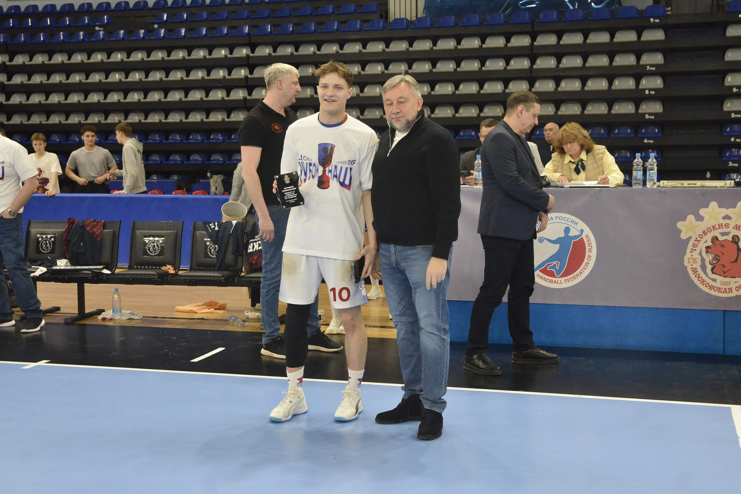 Помимо двух голов с двух попыток и заработанного семиметрового, проделал большой объём черновой работы. Касаткин без устали барражировал вдоль шестиметровой дуги, на что защитники "Чеховских медведей" просто не могли не обращать внимания. Действия линейного давали столь необходимое пространство для игроков задней линии.